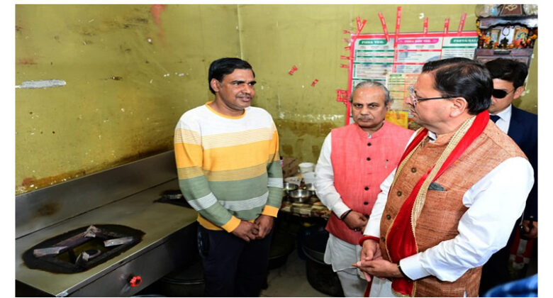 मुख्यमंत्री पुष्कर सिंह धामी ने रेस्टोरेंट में पहुंच लिया गैस आपूर्ति का जायजा। WWW.JANSWAR.COM