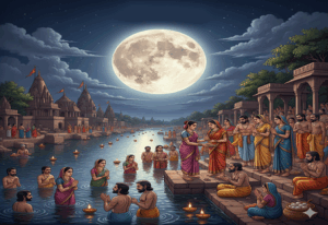 रास लीला: द्वापर युग में भगवान श्री कृष्ण ने इसी रात गोपियों के साथ ‘महारास’ रचाया था, इसलिए इसे रास पूर्णिमा भी कहते हैं।