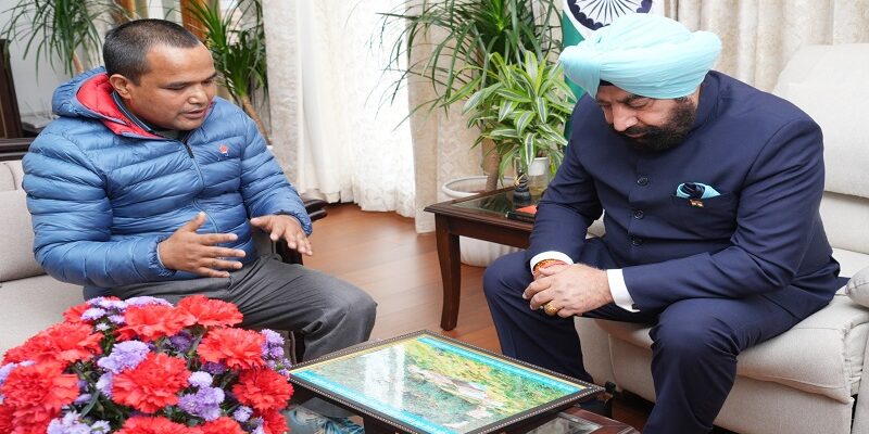 राज्यपाल लेफ्टिनेंट जनरल गुरमीत सिंह (से नि) से लोक भवन में ग्राम ल्वाणी, विकासखंड देवाल, जिला चमोली के मत्स्य पालन उद्यमी श्री मोहन सिंह बिष्ट ने भेंट की।