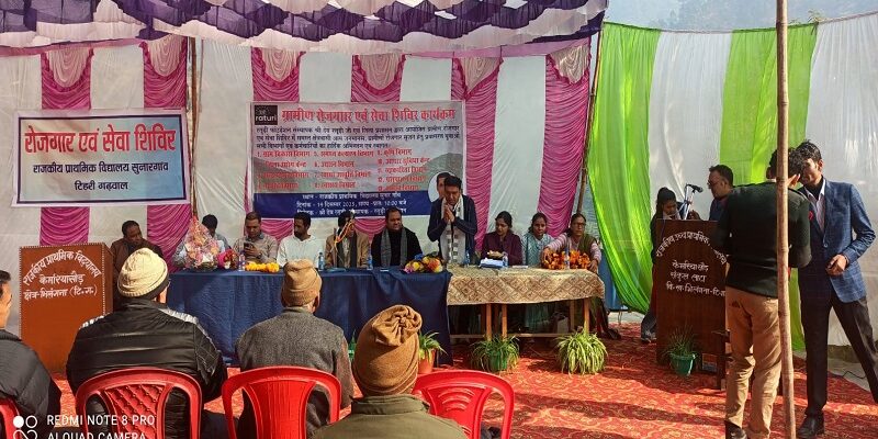 टिहरी:- आज शुक्रवार, 19 दिसम्बर 2025 को विकासखंड भिलंगना के राजकीय प्राथमिक विद्यालय, सुनार गांव में रोजगार एवं सेवा शिविर का आयोजन किया गया। कार्यक्रम के मुख्य अतिथि ब्लॉक प्रमुख राजीव कंडारी तथा विशिष्ट अतिथि नगर पंचायत अध्यक्ष चमियाला गोविंद सिंह राणा रहे।