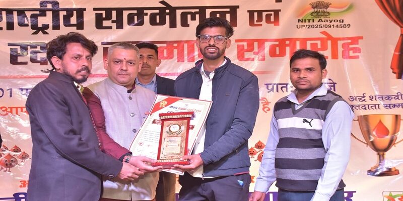 रक्त मित्र रोहित बिजल्वाण को किया गाजीपुर उत्तर प्रदेश में नेशनल अवार्ड से सम्मानित,रक्तमित्र रोहित बिजल्वाण अभी तक 12000 से अधिक मरीजों की कर चुके हैं मदद।