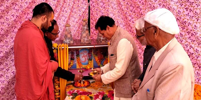 परम पूज्य केशवानंद जी महाराज,डॉ. शशी कंडवाल (पूर्व चिकित्सक),श्री किशोरी पैन्यूली (ग्राम प्रधान, गुमानीवाला)