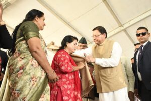 “वीर नारियों का सम्मान पूरे राज्य के लिए गौरव का क्षण”-सैनिक कल्याण मंत्री:- कार्यक्रम में सैनिक कल्याण मंत्री श्री गणेश जोशी ने कहा कि यह दिन उत्तराखंड के लिए गर्व और भावनाओं से परिपूर्ण है। उन्होंने प्रदेशवासियों को राज्य स्थापना दिवस की शुभकामनाएँ दीं और कहा कि उत्तराखंड की पवित्र भूमि ने देश को अनेक वीरता पदक विजेता दिए हैं, परमवीर चक्र, महावीर चक्र, वीर चक्र और शौर्य चक्र से सम्मानित वीर, जो सदैव हमारी प्रेरणा हैं।