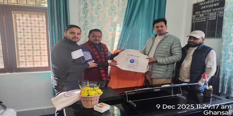 टिहरी:- जिलाधिकारी टिहरी गढ़वाल नितिका खण्डेलवाल द्वारा प्रारंभ किए गए ‘स्वच्छता अभियान’ के अंतर्गत वीडियो कॉन्फ्रेंसिंग के माध्यम से दिए गए निर्देशों के अनुपालन में कल मंगलवार को नगर पंचायत घनसाली द्वारा कपड़े के बैगों का वितरण किया गया। इस अवसर पर होटल स्वामियों के माध्यम से पर्यटकों को अधिक से अधिक कपड़े के बैगों का उपयोग करने तथा प्लास्टिक का प्रयोग न करने के प्रति जागरूक किया गया और पर्यावरण को स्वच्छ बनाए रखने हेतु चर्चा की गई।