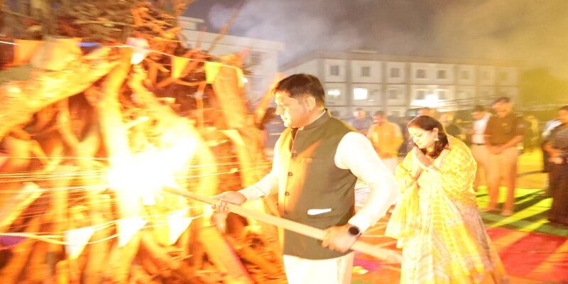 दून पुलिस लाइन में होलिका दहन, एसएसपी ने सपरिवार मनाई होली।