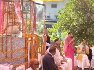 पालिकाध्यक्ष मनोज द्विवेदी, स्वच्छता ब्रांड एंबेस्डर चंद्रवीर पोखरियाल, और समाजसेवी वीर चंद रमोला ने उत्तराखंड आंदोलन के शहीद स्व. सूर्यप्रकाश थपलियाल की माता सत्यभामा थपलियाल का माल्यार्पण कर स्वागत किया।