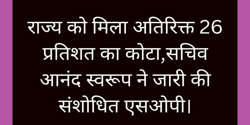 राज्य को मिला अतिरिक्त 26 प्रतिशत का कोटा,सचिव आनंद स्वरूप ने जारी की संशोधित एसओपी।