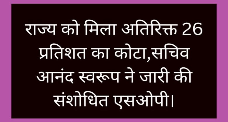 राज्य को मिला अतिरिक्त 26 प्रतिशत का कोटा,सचिव आनंद स्वरूप ने जारी की संशोधित एसओपी। देहरादून:- राज्य में व्यवसायिक एलपीजी सिलेण्डरों की बढ़ती मांग और