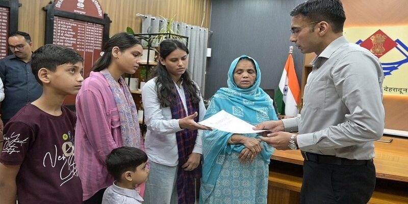 1 बेटी खो चुकी, 1 नन्ही नातिन व 3 अविवाहित बेटियों की असहाय विधवा माता क्षमा परवीन का डीएम ने करवाया बैंक ऋण माफ करवाते हुए बैंक से दिलाई नो ड्यूज जारी करवा दिया गया है। विधवा क्षमा का बैंक ऋण वन टाइम सेटलमेंट कराते हुए एनओसी जारी की गई तथा शेष 33 हजार धनराशि भी डीएम ने स्वयं जमा करवाई है। बेटी के विवाह के लिए वर्ष 2014 में डीसीबी बैंक से लिया था सवा लाख का ऋण लिया था। पति की वर्ष 2014 व बड़ी विवाहित बेटी की वर्ष 2020 में कोविड में मृत्यु हो चुकी है। पति की वर्ष 2014 व बड़ी विवाहित बेटी की वर्ष 2020 में कोविड में चुकी हो चुकी है। पारिवारिक संकट एवं बच्चों की जिम्मेदारियां के चलते शेष ऋण चुकाने में रही असमर्थ हो गयी। 3 अविवाहित बेटियों, तथा 5 वर्षीय नातिन के भरणपोषण शिक्षा की जिम्मेदारी विधवा क्षमा पर आन पड़ी तो जिला प्रशासन देहरादून की सहायता रूपी टीम सहारा बन गयी। नातिन आयरा को आरटीई के तहत नजदीकी प्राईवेट स्कूल में दाखिला दिला दिया है। छोटी बेटी फैजा की शिक्षा नंदा- सुनंदा से पुनर्जीवित करते हुए 27 हजार फीस प्रोजेक्ट ‘‘नंदा-सुनंदा’’ से दिलाई तथा मौके पर ही आय प्रमाण पत्र जारी करवाया गया है।