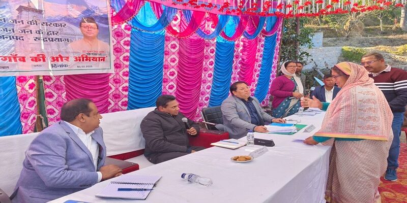 देहरादून:- मुख्यमंत्री पुष्कर सिंह धामी के दिशा-निर्देशों के क्रम में आम जनमानस तक केंद्र एवं राज्य सरकार की जनकल्याणकारी योजनाओं का लाभ सीधे पहुंचाने और जनसमस्याओं के त्वरित समाधान के उद्देश्य से प्रदेशभर में “जन-जन की सरकार, जन-जन के द्वार” अभियान संचालित किया जा रहा है। इसी क्रम में प्रभारी सचिव रुद्रप्रयाग डॉ. आर. राजेश कुमार ने जनपद का दौरा कर प्रशासनिक व्यवस्थाओं का स्थलीय निरीक्षण किया और ग्रामीणों से सीधा संवाद स्थापित किया। जिलाधिकारी रुद्रप्रयाग प्रतीक जैन के कुशल नेतृत्व में जनपद की 27 न्याय पंचायतों में चरणबद्ध रूप से बहुउद्देशीय शिविरों का आयोजन किया जा रहा है। इसी कड़ी में 05 फरवरी 2026 को न्याय पंचायत सतेराखाल के अंतर्गत ग्राम कमेड़ा में “प्रशासन गांव की ओर” बहुउद्देशीय शिविर का आयोजन किया गया। शिविर की अध्यक्षता प्रभारी सचिव रुद्रप्रयाग डॉ. आर. राजेश कुमार ने की।